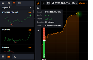Cogli il momento sulle previsioni corrette grazie allo strumento di analisi chiamato "Segnali". Tutti i trend del mercato vengono visualizzati in modo automatico sul lato sinistro dei grafici. Si può vedere a colpo d’occhio la direzione dei movimenti di ciascun asset.