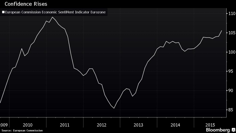 L’indice di fiducia dei consumatori è salito a 105.6 punti nel mese di settembre da un 104,1 nel mese di agosto (secondo la Commissione Europea di Bruxelles), e questa è stata la lettura più alta dal giugno 2011.
