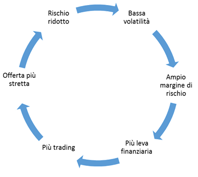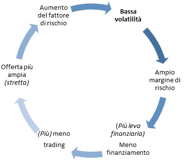 Rispetto al periodo 2004 - 2007, durante il quale si è innestato un circolo virtuoso di bassa volatilità legato ai bassi volumi, il momento 2013-2014 si sta trasformando in un circolo vizioso nel quale la bassa volatilità potrà mettere a rischio i mercati a causa delle manovre monetarie della Fed e delle altre banche centrali.