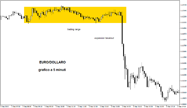 Molto spesso i mercati attendono con impazienza dati macroeconomici particolarmente significativi (pil, inflazione, lavoro) o semplicemente conferenze stampa di governatori di banche centrali. Si tratta di eventi macro fondamentali per gli investitori, che poi decidono cosa acquistare e cosa vendere. Il trader può sfruttare la volatilità e la direzionalità post dato, utilizzando una tecnica basata sui breakout sui grafici intraday. Si tratta del ben noto Expansion Breakout, che consente di capire quando sta realmente per partire un movimento direzionale.