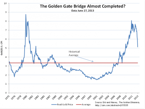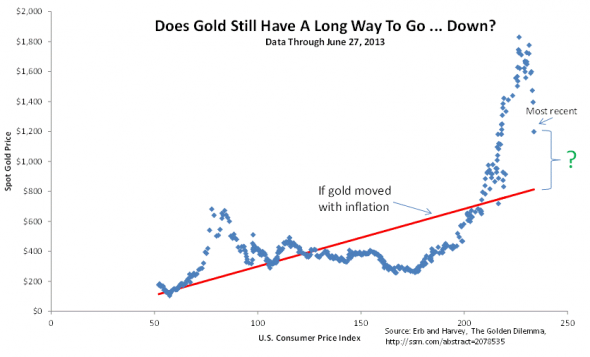 Ma parlando di prezzi minimi, la discussione sul prezzo più basso che il metallo giallo possa raggiungere si complica alquanto. Campbell Harvey, della Duke University, ritiene ad esempio che in termini reali il prezzo dell’oro sia stato sopravvalutato per lungo tempo.