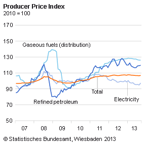 Secondo quanto riportato da Destatis, l’ufficio di statistica tedesco, a settembre 2013 l’indice dei prezzi alla produzione per i prodotti industriali in Germania è caduto dello 0,5% rispetto allo stesso mese dell’anno precedente.