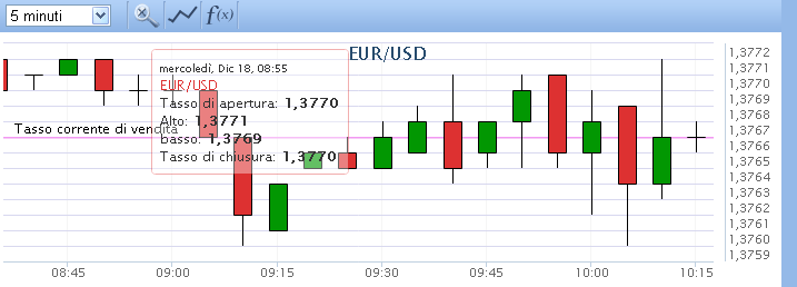 Il cambio EURUSD, come mostra il grafico quì sopra, è in zona 1.3767.
