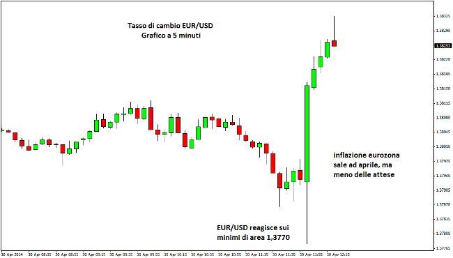 L’inflazione nell’eurozona è aumentata ad aprile, ma meno di quanto prospettato dagli analisti finanziari. Sul mercato valutario EUR/USD sale sopra 1,3830