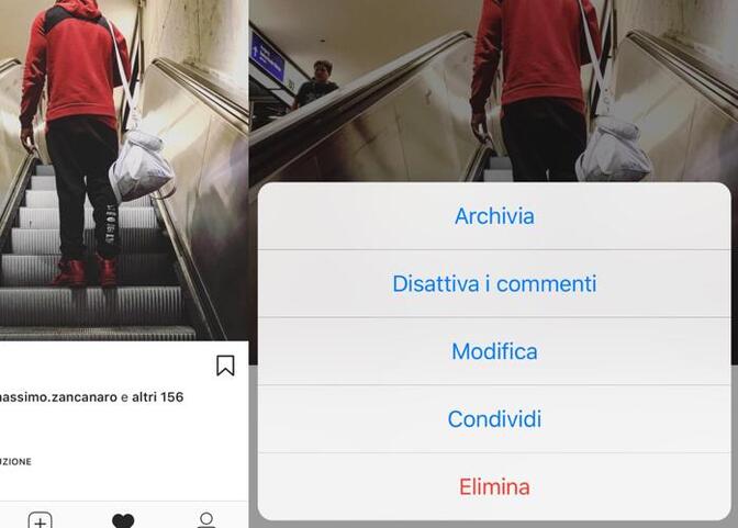 Una volta aperta la foto bisogna fare tap sull’icona con i tre puntini in alto a destra che apparirà sul post giù pubblicato. Si aprirà così un menu dove tra le varie voci delle opzioni disponibili apparirà anche la nuova funzione “Archivia”.