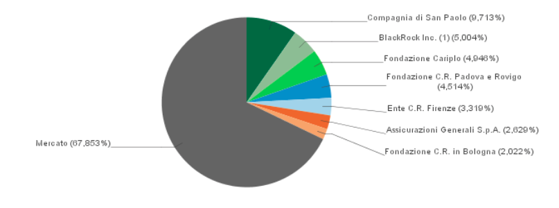 Da oggi, in seguito dell’aggiornamento delle partecipazione nel gruppo, l’azionariato di Intesa Sanpaolo (con quote superiori al 2%) risulta così composto: