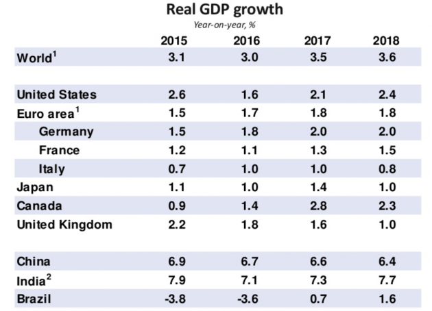 Le stime di crescita per Giappone e Cina, per il biennio 2017-2018, sono state invece riviste al rialzo dall’Ocse. Infine, l’espansione globale per il 2017 è salita al 3,5% dal 3,3%.