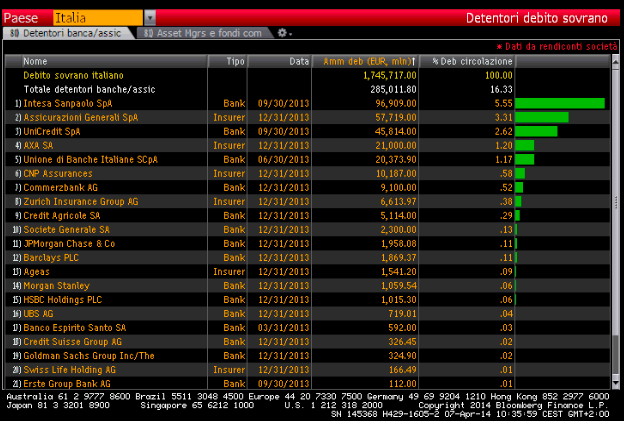 PRINCIPALI BANCHE E ASSICURAZIONI DETENTRICI DEL DEBITO PUBBLICO ITALIANO
