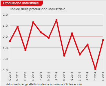 A novembre 2014 l’indice destagionalizzato della produzione industriale è aumentato dello 0,3% rispetto ad ottobre. Nella media del trimestre settembre-novembre la produzione è diminuita dell’1,0% rispetto al trimestre precedente.