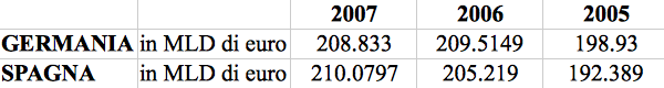 | SPAGNA | in MLD di euro | 210.0797 | 205.219 | 192.389 |