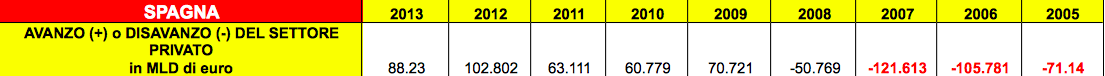 E ad una Nazione come la Spagna che invece in quegli anni importava di più di quanto esportava (E-I < 0) ed aveva un avanzo nel bilancio pubblico (G – T < 0 oppure T – G > 0) cosa sarà mai successo a (S – I) ?