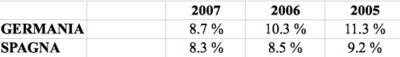Ecco tali dati per la Spagna, presi dal database Ameco, negli anni 2005 – 2006 – 2007: