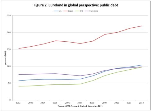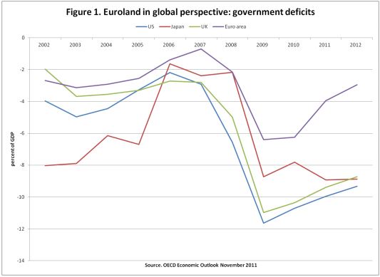 Guardando la situazione globale della zona, non è affatto chiaro perché Eurolandia è oggi l’hotspot globale di instabilità. In particolare, viste da una prospettiva globale, le finanze pubbliche di Eurolandia non sembrano essere particolarmente povere.
