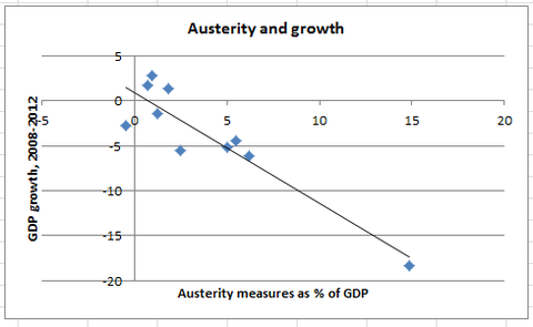 Da allora abbiamo avuto quella che deve essere stata una delle più decisive combinazioni mai esistite di critica accademica e prove sul mondo reale di una dottrina economica - e l’austerità espansiva non è uscita a pieni voti. Il FMI è andato ad indagare sull’austerità attraverso un esame della politica attuale, e i risultati di Alesina sono stati contraddetti. I critici hanno mostrato che tutti gli esempi di presunte espansioni attraverso l’austerità hanno coinvolto fattori come il deprezzamento della moneta o forti cali dei tassi di interesse che non ora non sussistono. Le politiche di Obsorne nel Regno Unito hanno portato alla stagnazione, e nella zona euro, beh ...