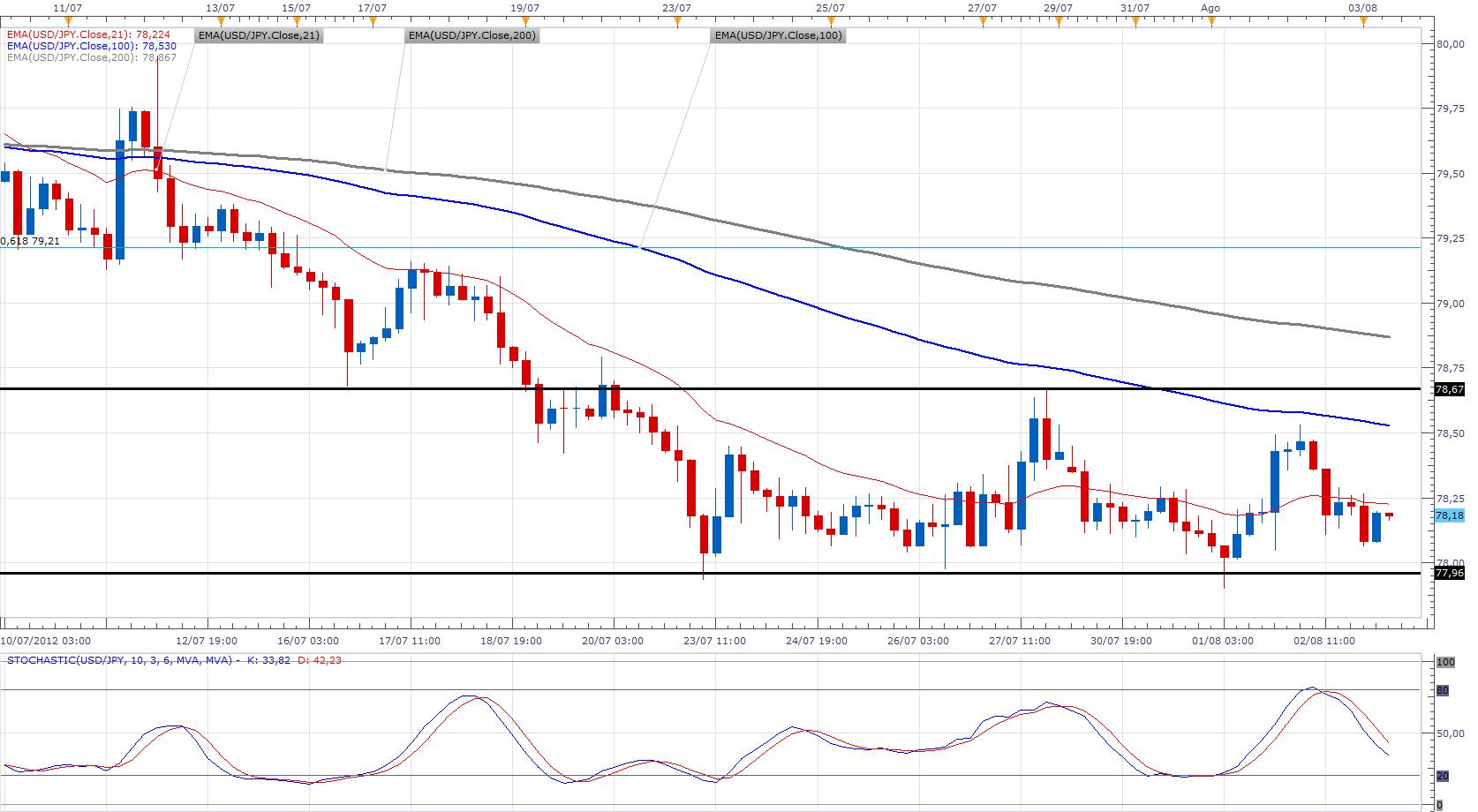 Nonostante tutto quello che è stato visto ieri, il cambio UsdJpy mantiene una certa stabilità e continua a confermare l’incertezza che regna sovrana intorno al livello di 78. Non per voler essere banali, ma continuiamo a pensare che sotto 78 si possano scatenare tali forze ribassiste da mettere in guardia tutti coloro i quali si siano messi lunghi (il 92 % dei trader, secondo quanto risulta del nostro indice Speculative Sentiment Index).