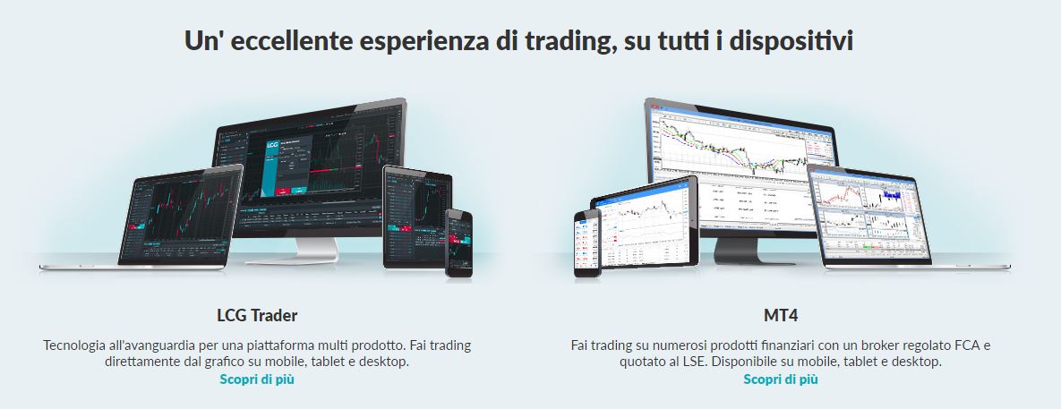 LCG offre due diverse tipologie di piattaforma di trading: MetaTrader 4 e la piattaforma proprietaria LCG Trader.