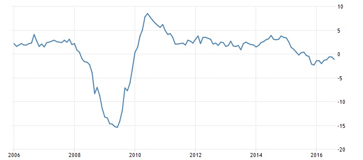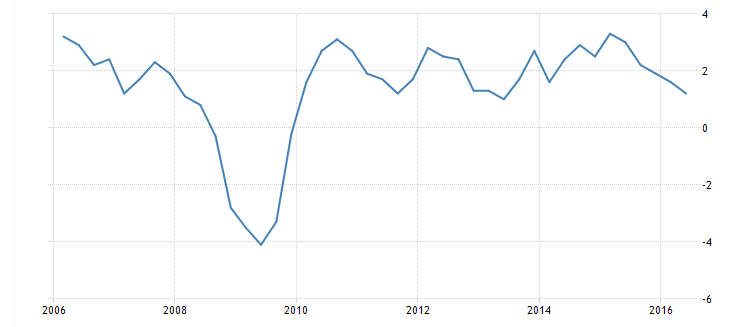 Gli USA sembrano proiettati verso una recessione economica, basta dare un’occhiata all’andamento della produzione industriale, in genere proxy dell’andamento del PIL, per capire che gli Stati Uniti non stanno attraversando una fase di crescita: