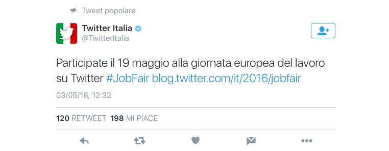 “Qualunque cosa si faccia o si desideri fare nella vita, Twitter è un ottimo strumento per costruire il proprio profilo professionale e la propria rete di contatti, per cercare nuove opportunità. E per le aziende che stanno cercando nuovo personale, Twitter è davvero la piattaforma ideale per avere una presenza online e per promuovere le nuove opportunità di lavoro ai candidati potenzialmente più idonei”.