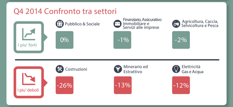 Rispetto all’anno scorso, le previsioni migliorano in otto settori industriali su 10. I miglioramenti più degni di nota, di 18 ed 15 punti percentuali, sono, rispettivamente, quelli relativi al settore pubblico e sociale e al settore delle comunicazioni.