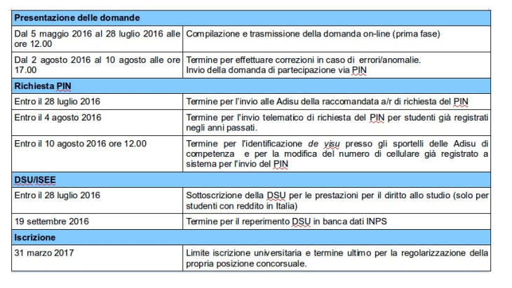 Ecco una tabella che riassume tutte le scadenze da ricordare per l’invio della domanda per il bando di concorso Laziodisu 2016/2017: