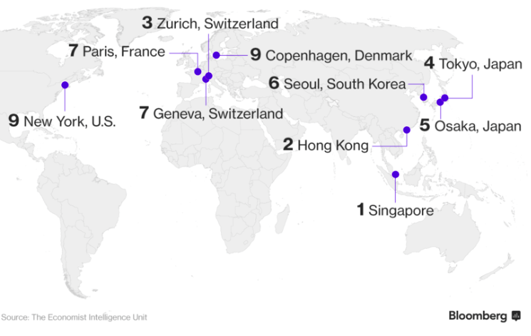 Secondo la classifica relativa al 2017 Singapore è la città più cara per il quarto anno consecutivo, seguita da Hong Kong e Zurigo.