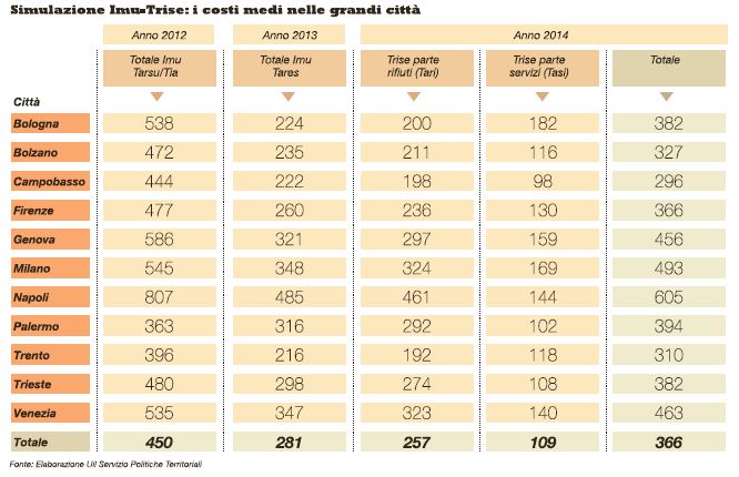 Ecco una simulazione elaborata dal dipartimento delle politiche territoriali della UIL sulle tasse sulla prima e seconda casa nelle grandi città.