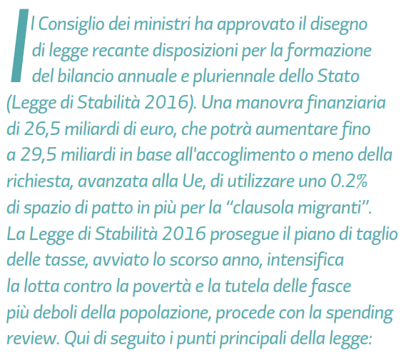 Home > Altro > Archivio > Legge di Stabilità 2016: reale beneficio alle tasche dei contribuenti italiani?