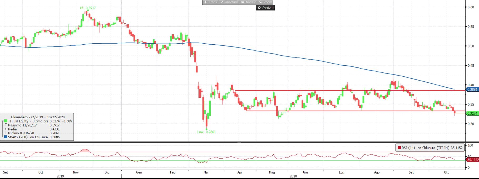 Telecom Italia, grafico giornaliero. Fonte: Bloomberg