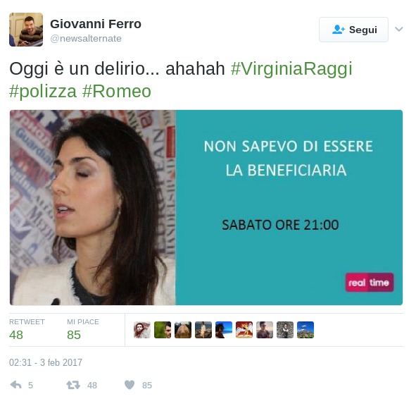 E poi i tweet che ironizzano sulla situazione e sulle dichiarazioni di Virginia Raggi, insieme a quelli che la paragonano a Scajola, deputato di Forza Italia coinvolto nel caso dell’appartamento a Roma intestato a sua insaputa.