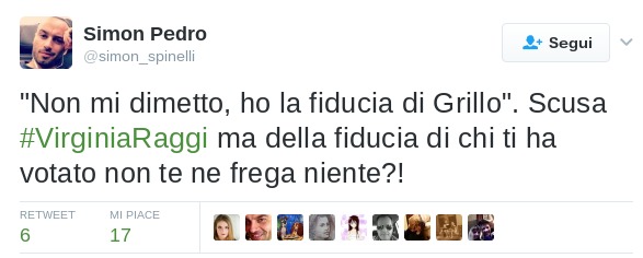 Tra questi, quelli che rispondono alle dichiarazioni della Raggi sul fatto di aver sentito Beppe Grillo e di avere la sua fiducia, chiedendosi se alla sindaca importi anche di avere la fiducia di chi le ha dato il voto.