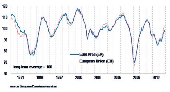 a novembre, il forte incremento della fiducia dei manager d’industria e soprattutto dei servizi, ha consentito all’indicatore per l’eurozona di salire a 98,5 punti, rispetto al riferimento di 100. Tuttavia e’ calata la fiducia dei consumatori, dei costruttori e dei dettaglianti, mitigando quindi l’incremento dell’indice, che segna comunque il suo settimo aumento consecutivo da maggio