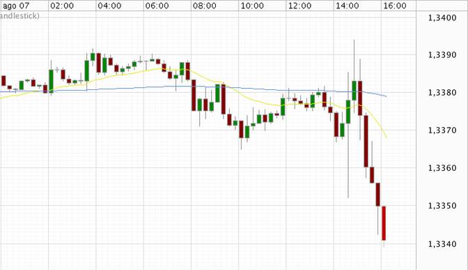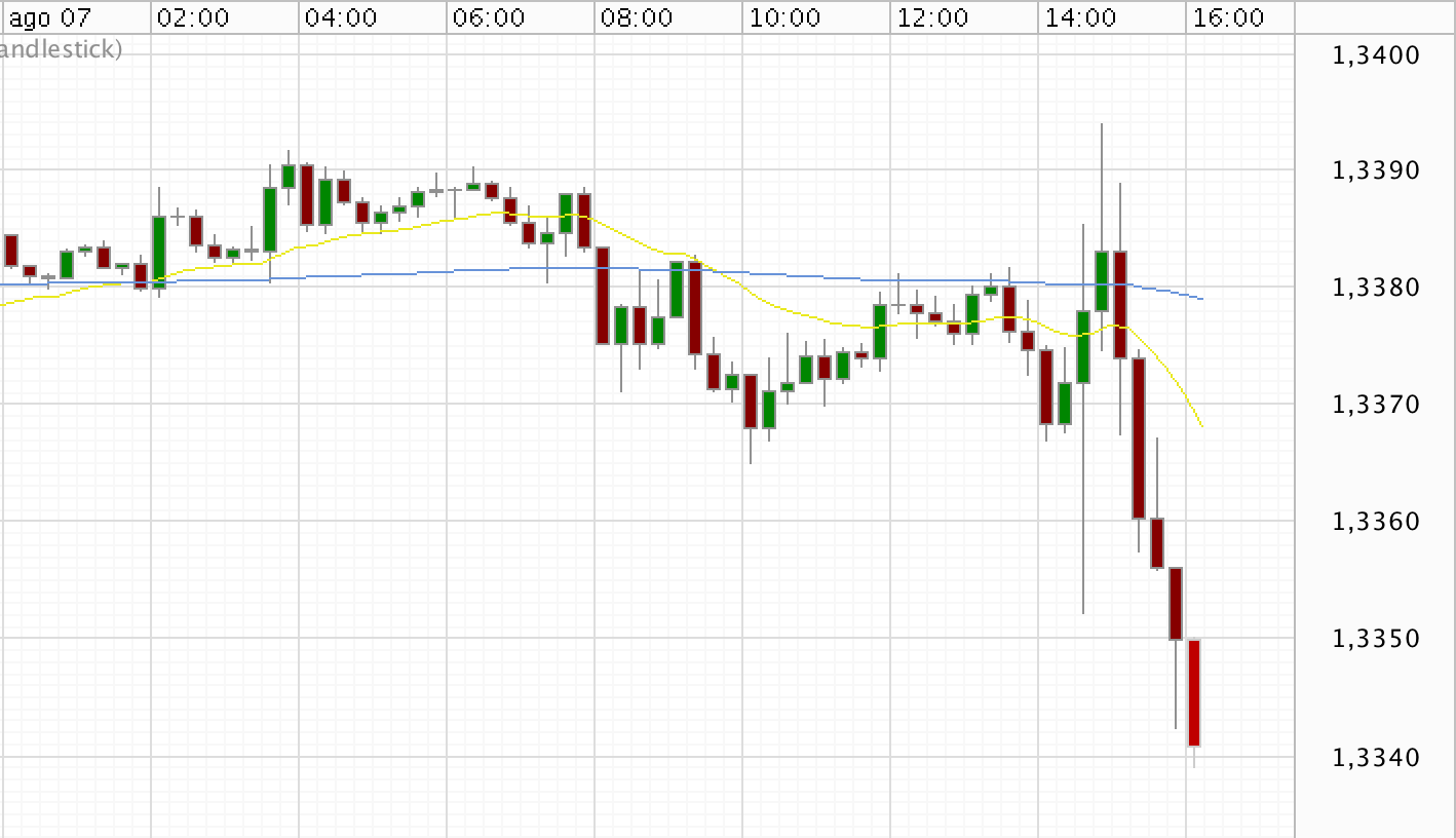 L’effetto di questa affermazione sul mercato Forex si è sentito subito: nella prima mezz’ora di conferenza basata su nessun annuncio di misure straordinarie il cambio EURUSD è sostanzialmente salito fino a toccare quota 1.34. Dall’annuncio della divergenza di lungo periodo tra i tassi Europei e USA il cambio ha invece iniziato a scendere e sta andando ora a cercare di aggiornare i nuovi minimi sotto area 1.334 dopo aver rotto prepotentemente il minimo toccato nella fase di volatilità di inizio conferenza a 1.3350.