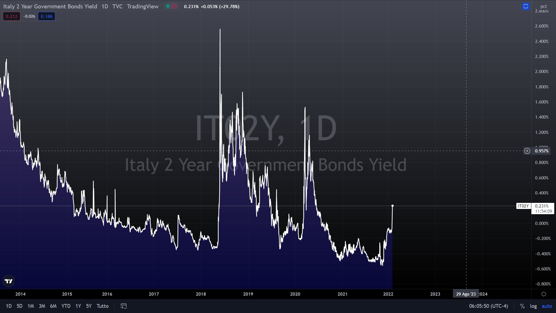 Andamento del rendimento del titolo italiano a 2 anni