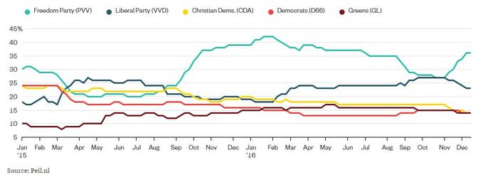 Il Partito per la Libertà di Geert Wilders guida i sondaggi di opinione olandesi.