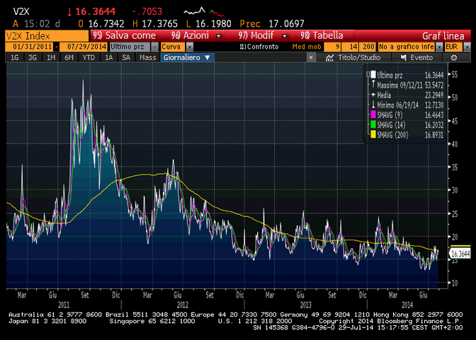 Volatilita’ sullo stoxx 50 dal 2011 ad oggi
