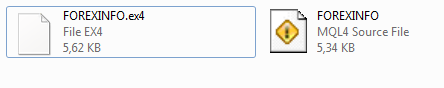 - Gli indicatori per Metatrader hanno il formato .MQL4 - si tratta del file sorgente contenente il codice di programmazione dell’indicatore. Nel nostro esempio abbiamo chiamato l’indicatore FOREXINFO.mql4