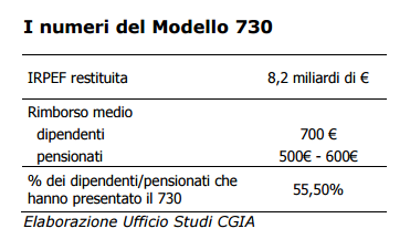 Modello 730/2015: 700 euro di rimborsi per ogni lavoratore. Ecco i calcoli della Cgia