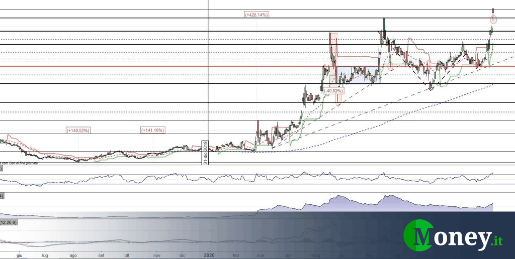 Il titolo segna una performance giornaliera del +9,58% e chiude la seduta a quota 97,95$. Possibile arrivo in area 100$, ma attenzione alle prese di beneficio dopo l’accelerazione.