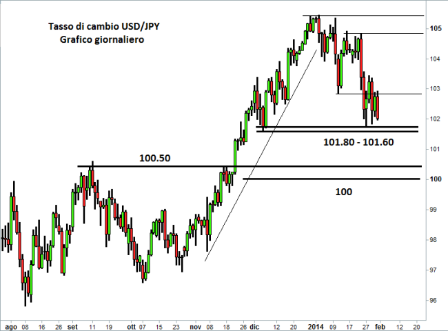 La forza dello yen è dovuta al clima di avversione al rischio di inizio anno, che sta spingendo gli investitori nipponici a rimpatriare i capitali sui timori di un peggioramento della crisi dei mercati emergenti e dell’economia europea, sulla quale aleggia sempre più lo spettro della deflazione. Il sentiment di risk off sta allontanando gli investitori dagli asset più rischiosi, favorendo le prese di beneficio sulle borse. Tokyo è in deciso calo e lo yen sta così recuperando posizioni dopo la notevole svalutazione dello scorso anno. La volatilità sui mercati internazionali resta elevata, per cui la divisa nipponica potrebbe salire ancora nei prossimi giorni.