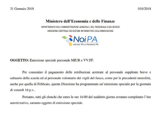 NoiPa, stipendi arretrati per supplenti e volontari Vigili del Fuoco: ecco le date dei pagamenti