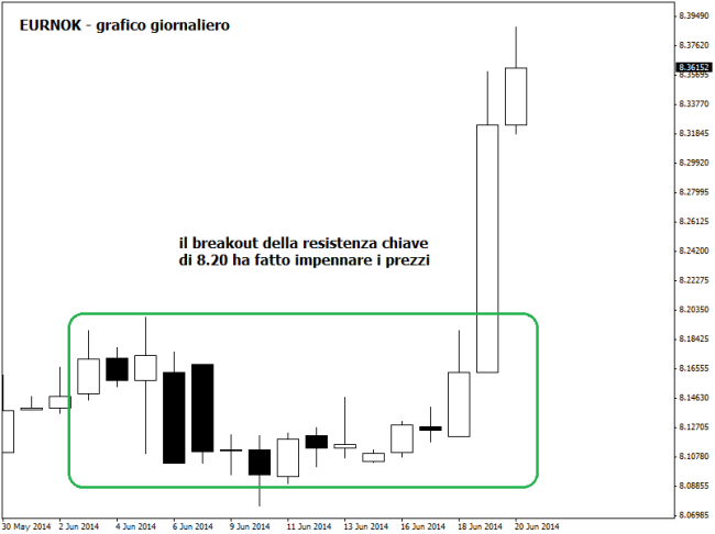 La Norges Bank ha annunciato che i tassi di interesse in Norvegia dovranno mantenersi sui valori correnti per un periodo prolungato di tempo e che non saranno alzati prima della fine del 2015. Sul mercato valutario la corona norvegese è in profondo rosso e nella sola giornata di ieri ha perso più del 2% nei confronti dell’euro. Il tasso di cambio Eur/Nok è volato fino a 8,3880 circa, dopo un boom eccezionale dei prezzi iniziato un paio di giorni fa da area 8,12. La debolezza della corona norvegese sta contagiando anche l’altra corona scandinava, ovvero quella svedese, che paga anche il peggioramento dei fondamentali macroeconomici in Svezia, dove continua a tenere banco il rischio di bolla immobiliare. Il cross Eur/Sek è salito sui massimi da oltre un anno in area 9,1450.