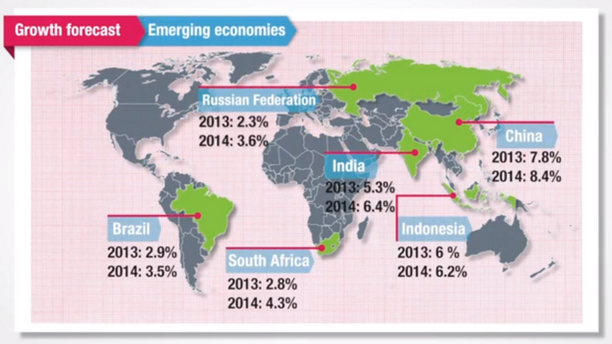 Nei paesi delle economie emergenti, la crescita sarà superiore a quella delle economie sviluppate, ma allo stesso tempo con tassi di crescita davvero divergenti, come mostra il grafico.
