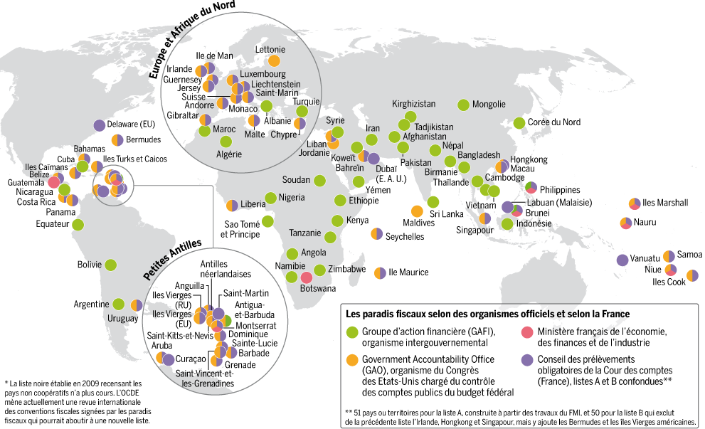 Di seguito una mappa pubblicata dal francese Le Monde che indica i paesi, paradisi fiscali coinvolti nell’inchiesta.
