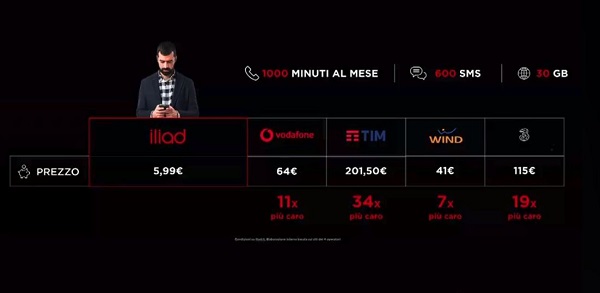 Per dimostrare la convenienza di passare a Iliad Italia, Levi ha confrontato la sua offerta con alcune di quelle proposte attualmente dalle altre compagnie.