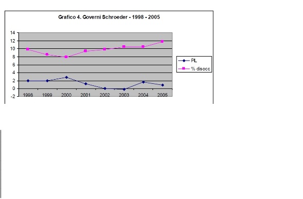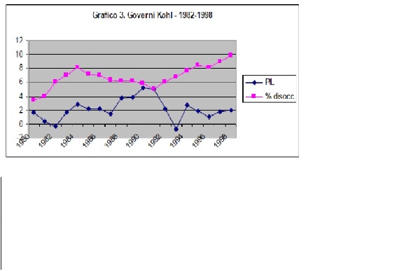 Nonostante un massiccio programma di investimenti infrastrutturali nella parte orientale del paese, quando nel 1998 la socialdemocrazia torna al governo con Schroeder la disoccupazione oscilla tra l’8 e il 10%, il tasso di crescita è in calo e le esportazioni hanno perso di aggressività (vedi Grafico 3)