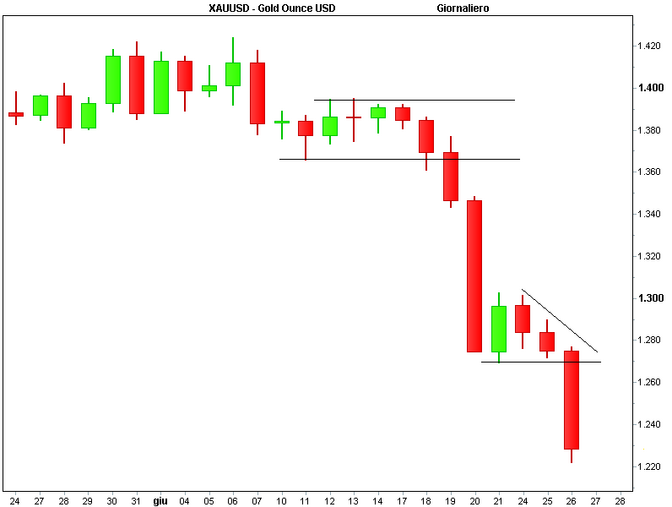 Home > Altro > Archivio > Oro a picco a 1.221 dollari ai minimi da quasi 3 anni