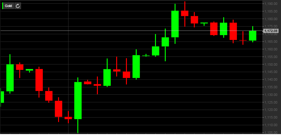 L’oro (XAUUSD) è in rialzo dello 0,55% a 1172 dollari, dopo aver toccato il massimo degli ultimi 4 mesi nel corso della scorsa settimana a quota 1191$.