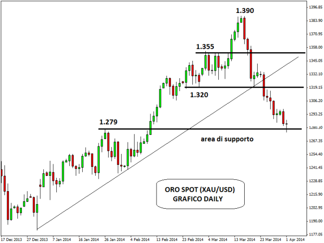 Il rally avvenuto nei primi due mesi e mezzo dell’anno si è subito sgonfiato, complice l’affievolimento delle tensioni per la crisi in Ucraina e il ritrovato ottimismo sui mercati finanziari globali. Gli investitori stanno chiudendo rapidamente le posizioni lunghe accumulate nelle ultime settimane, quando il rally stava effettivamente diventando molto solido e i prezzi sempre più lanciati verso la soglia psicologica di 1.400$ l’oncia.