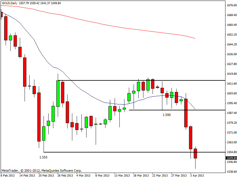 Nuova pesante battuta d’arresto per l’oro, che stamattina ha toccato il minimo più basso degli ultimi 10 mesi a 1.541 dollari l’oncia. La discesa sotto 1.550 dollari era nell’aria da qualche tempo ed è diventata sempre più probabile dopo il breakout ribassista esplosivo della fase di congestione giornaliera compresa tra 1.608 e 1.590 dollari. L’indicazione short è stata anche segnalata nei report del servizio Segnali di Forex.
