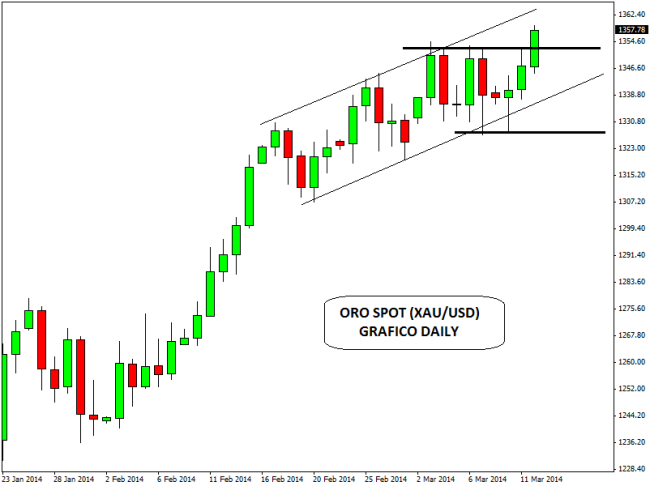 L’oro continua a macinare guadagni sui mercati internazionali, favorito dalla preoccupazione degli investitori per la crisi in Ucraina dopo che il parlamento della Crimea ha annunciato l’indipendenza da Kiev ancora prima del referendum del 16 marzo. Le tensioni geopolitiche tra Ucraina e Russia stanno spingendo sempre più gli investitori a rifugiarsi nel metallo prezioso, in particolare gli acquirenti asiatici (cinesi e indiani in primis). Non è un caso che l’oro effettui bruschi movimenti al rialzo proprio con l’avvio delle contrattazioni in Asia. Il quadro tecnico resta molto positivo e da inizio anno è stata realizzata già una performance superiore al 12%.
